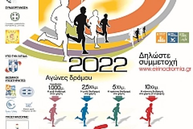 Η Ειρηνοδρομία, περιλαμβάνει αγώνες 10χλμ., 5χλμ. και 2,5χλμ., καθώς επίσης και μια διαδρομή ευαισθησίας 1.000μ.